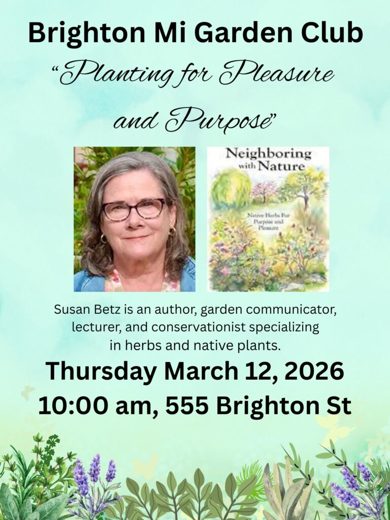 Mailing address: Brighton Michigan Garden Club, PO Box 121 Brighton, MI 48116