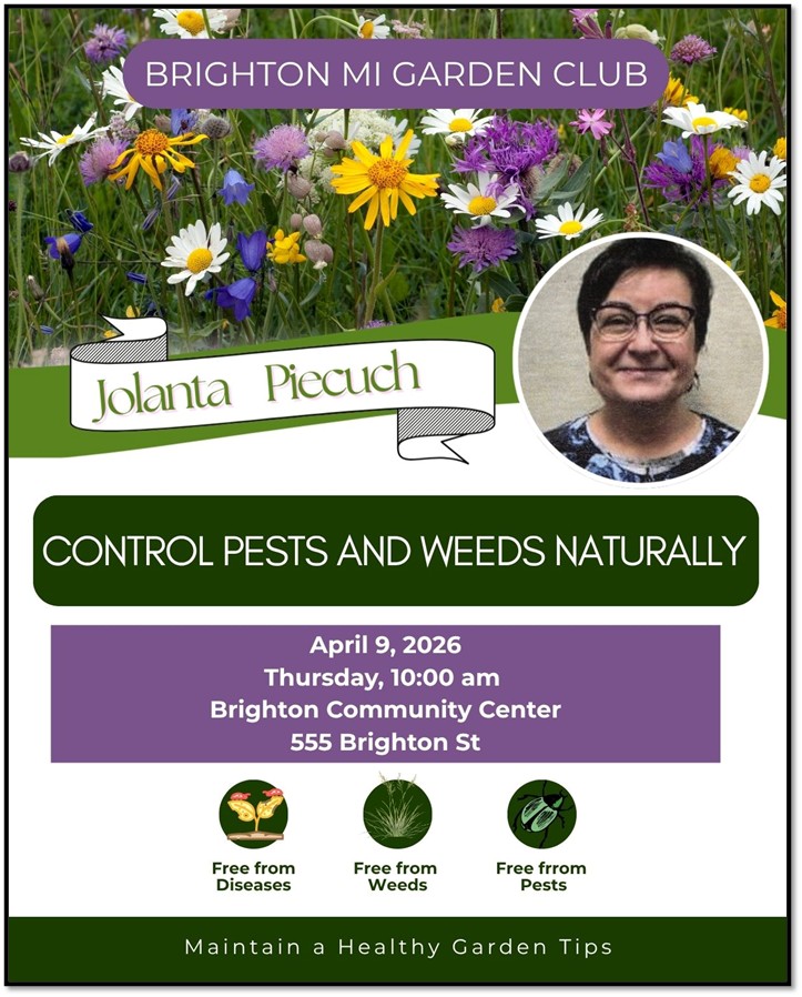Mailing address: Brighton Michigan Garden Club, PO Box 121 Brighton, MI 48116